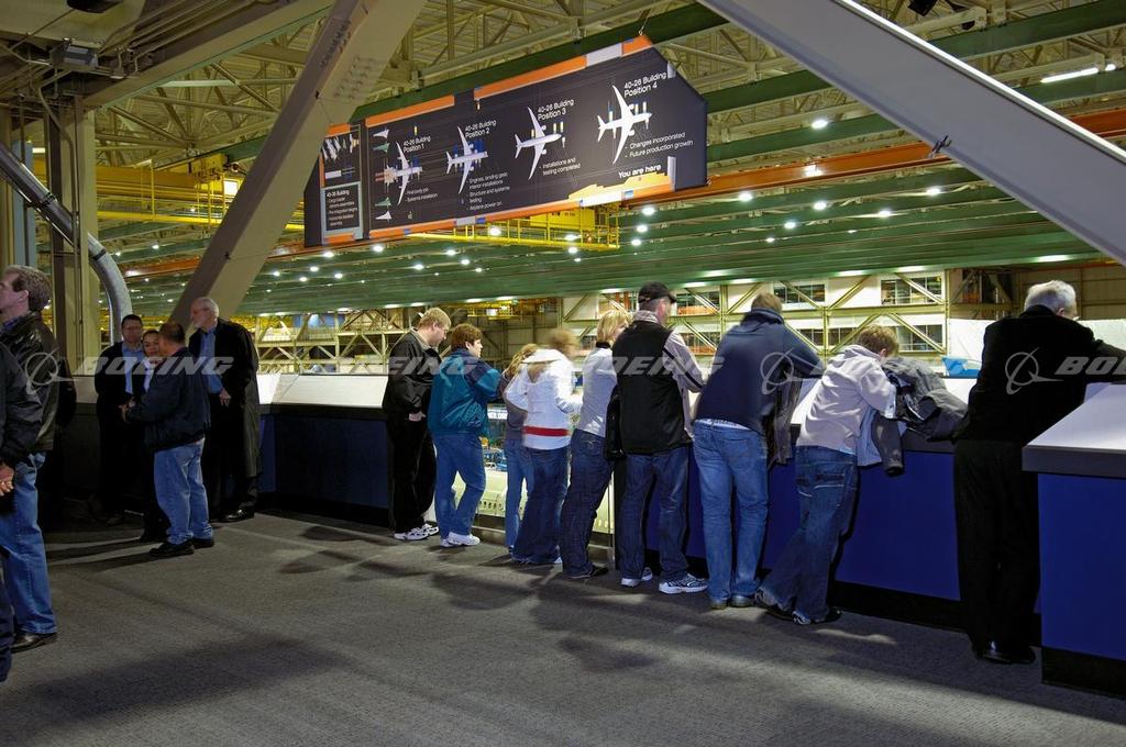 Visitors at the Everett Factory Tour Center Look over the Balcony