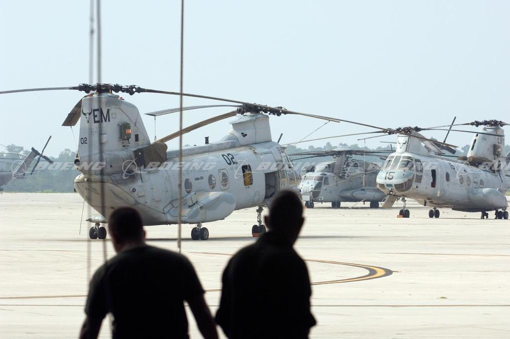Marine CH-46 Sea Knight Flight Line at MCAS New River