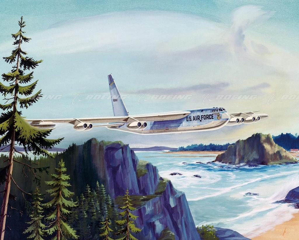 B-52D Superfortress "Tommy's Tigator" Flying Over Coastline