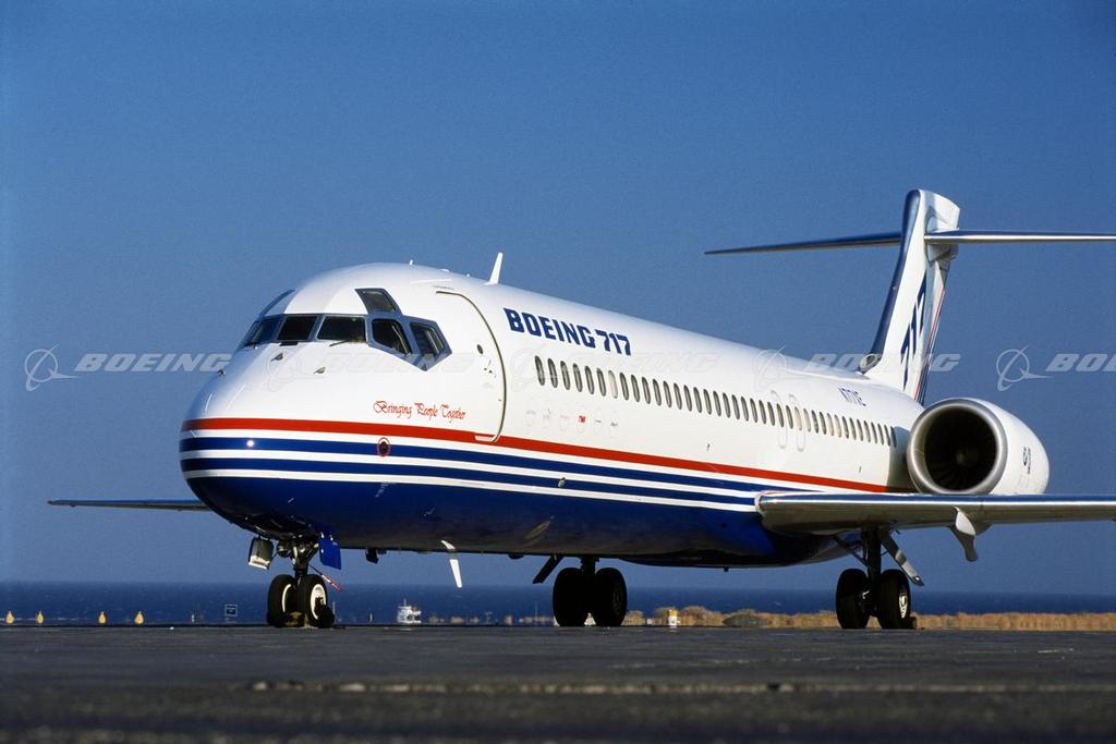 The 717 is a full-size twinjet designed specifically for the short-range, 100-seat regional airline market and is a very efficient and exceptionally quiet airplane. Its advanced technologies and rugged simplicity of design allow it quick turnaround time at a wide range of airports, so crew and passengers spend less time on the ground. It makes effective use of today's technology to lower operating costs, reduce noise and emissions, and provide big jet comfort. The airplane, formerly MD-95, was designated the Boeing 717 following the merger of McDonnell Douglas and The Boeing Company in 1997. In early 2005, after careful assessment of the challenging 100-seat market, Boeing announced that it will conclude 717 production in 2006 after delivering on current customer commitments.