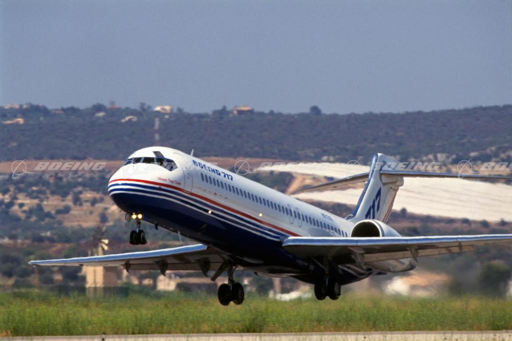 The 717 is a full-size twinjet designed specifically for the short-range, 100-seat regional airline market and is a very efficient and exceptionally quiet airplane. Its advanced technologies and rugged simplicity of design allow it quick turnaround time at a wide range of airports, so crew and passengers spend less time on the ground. It makes effective use of today's technology to lower operating costs, reduce noise and emissions, and provide big jet comfort. The airplane, formerly MD-95, was designated the Boeing 717 following the merger of McDonnell Douglas and The Boeing Company in 1997. In early 2005, after careful assessment of the challenging 100-seat market, Boeing announced that it will conclude 717 production in 2006 after delivering on current customer commitments.