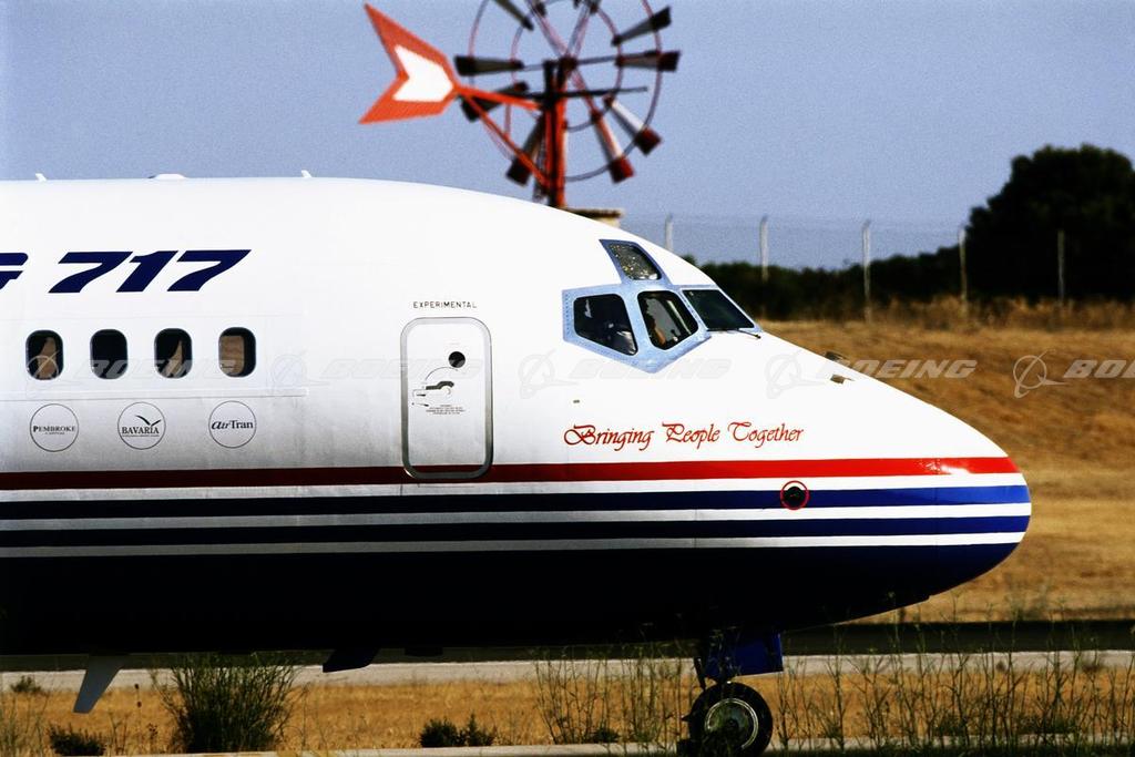 The 717 is a full-size twinjet designed specifically for the short-range, 100-seat regional airline market and is a very efficient and exceptionally quiet airplane. Its advanced technologies and rugged simplicity of design allow it quick turnaround time at a wide range of airports, so crew and passengers spend less time on the ground. It makes effective use of today's technology to lower operating costs, reduce noise and emissions, and provide big jet comfort. The airplane, formerly MD-95, was designated the Boeing 717 following the merger of McDonnell Douglas and The Boeing Company in 1997. In early 2005, after careful assessment of the challenging 100-seat market, Boeing announced that it will conclude 717 production in 2006 after delivering on current customer commitments.