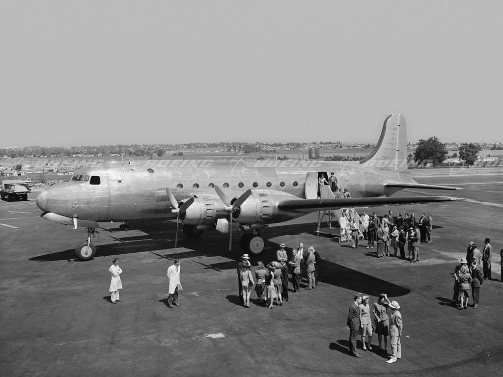 Douglas DC-4: With 24 firm commercial orders, production of the DC-4 began in the spring of 1939. But before the first was completed, the start of World War II necessitated the DC-4's reconfiguration as a military transport under the Army Air Force designation of C-54. (The DC-4 was known in the Navy as the R5D.) The plane made its first flight on February 14, 1942, with 1,162 being built as transports. Between 1942 and 1945, DC-4s successfully completed 79,642 transoceanic flights in support of the war effort, with only three ditchings, one of which was a test. A single C-54, nicknamed Sacred Cow, was built as the first official presidential transport aircraft. After the war, many were converted to commercial airliners. In addition 79 new DC-4s were delivered to airline customers in 1946 and 1947. Military DC-4s gained fame as the principle transport used during the 1948-1949 Berlin Airlift.