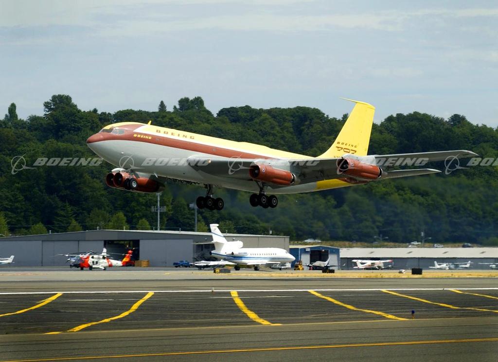 The historic Boeing 367-80, which helped usher in the modern era of jet-engine powered commercial airplanes, departed Seattle on Aug. 24, 2003 on a journey to its new home at the Smithsonian Institution's National Air and Space Museum. Nicknamed the "Dash 80," the airplane first flew on July 15, 1954, and was the prototype for the Boeing 707, the world's first successful commercial airplane with jet engines, and the KC-135 aerial refueling aircraft. The Dash 80 served 18 years as a flying test-laboratory before being donated to the Smithsonian in 1972. It was in storage for 16 years before Boeing and the Smithsonian agreed to its restoration.