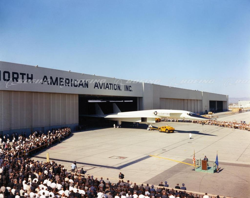The XB-70A, built by North American Aviation's Los Angeles Division for the U.S. Air Force, was an experimental high-speed, delta-wing aircraft designed to fly at Mach 3 and at altitudes in excess of 70,000 feet. It was powered by six General Electric J-93 turbojet engines, each producing approximately 30,000 pounds of thrust. Primary purpose of the aircraft was to investigate the feasibility of long-range, high-speed flight and to advance the aeronautical state of the art in those areas. Among its features were a movable canard, the "compression lift" aerodynamic design principle, in-flight accessibility to electronics equipment, a shirt-sleeve environment for the crew, and encapsulated seats for crew ejection at speeds up to Mach 3 and at altitudes to above 70,000 feet.