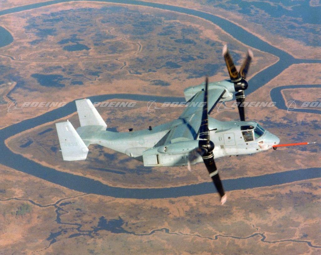 The V-22 Osprey was the first aircraft designed from the ground up to meet the needs of all four U.S. Armed services. In partnership with Bell Helicopter Textron, Boeing Helicopters built the revolutionary tiltrotor aircraft that takes off and lands vertically like a helicopter. Once airborne, its blades can be rotated to convert the aircraft to a turboprop airplane capable of high-speed, high-altitude flight. Boeing was assigned responsibility for the fuselage, all subsystems, digital avionics and fly-by-wire flight-control systems.