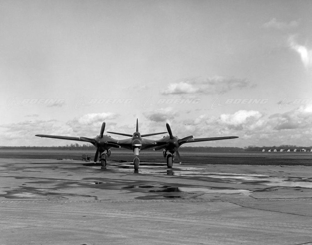 The XP-67 was McDonnell's only propeller-powered fighter. On Aug. 14, 1941, the U.S. Army Air Forces placed its first order with the tiny McDonnell Aircraft Corp. for two prototypes of a novel, twin-engine, long-range fighter with a pressurized cabin. Engineers tried to improve the airplane's aerodynamics by merging the center fuselage with rear portions of the engine nacelles. This resulted in the XP-67's unique bat-like shape. The turbo-supercharged 12-cylinder, inverted-V, liquid-cooled engines would be housed in long nacelles and would drive four-blade propellers in opposite directions. They were to maximize the use of exhaust to increase engine thrust. The XP-67 was completed in St. Louis, Mo., in December 1943, but the temperamental engines caused the airplane's first flight to last only six minutes. Problems continued with the engines, and the XP-67's top speed was 200 mph slower than required. The second prototype was never finished.