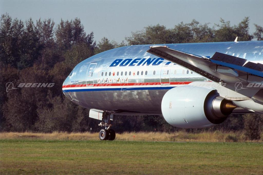 First Boeing 777 Freighter Taxies on the Runway on the Day of its First Flight