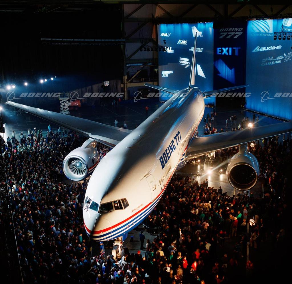 The ceremonial rollout of the first 777 was on April 9, 1994. Boeing unveiled the first 777 to approximately 100,000 employees and their guests, customers and suppliers.