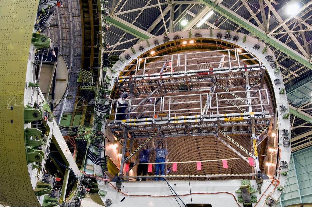 Dreamlifter Unloads Dreamliner Fuselage Sections