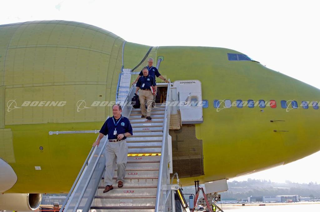 Dreamlifter Large Cargo Freighter Crew Deplanes at Boeing Field
