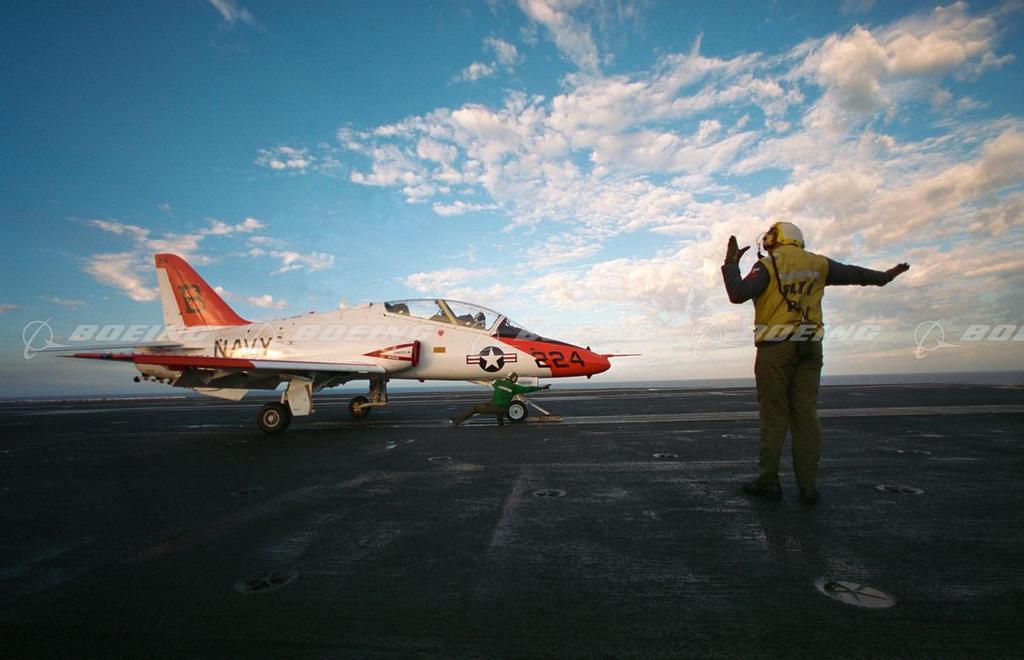 The T-45 Training System is the first totally integrated training program developed for the U.S. Navy. It includes flight simulators, computer-assisted instruction, and contractor-provided logistics support. At the heart of the system is the T-45 Goshawk aircraft, which replaces both the North American T-2C Buckeye and the Douglas TA-4J Skyhawk naval jet trainers. The T-45 is a modified version of Britain’s Royal Air Force Hawk trainer. The T-45A made its first flight on April 16, 1988. Deliveries began in 1992 and flight training in 1994. Boeing and British Aerospace share production of the T-45, with final assembly at Boeing facilities in St. Louis. The latest version, the T-45C, has a digital cockpit. It made its first flight in October 1997. The new cockpit is similar to those used in current Navy aircraft, and will better prepare pilots for flying the F/A-18 Super Hornet, the AV-8B Harrier II Plus and other next generation fighters. Boeing delivered the 221st and final T-45 training jet to the U.S. Navy in November 2009.