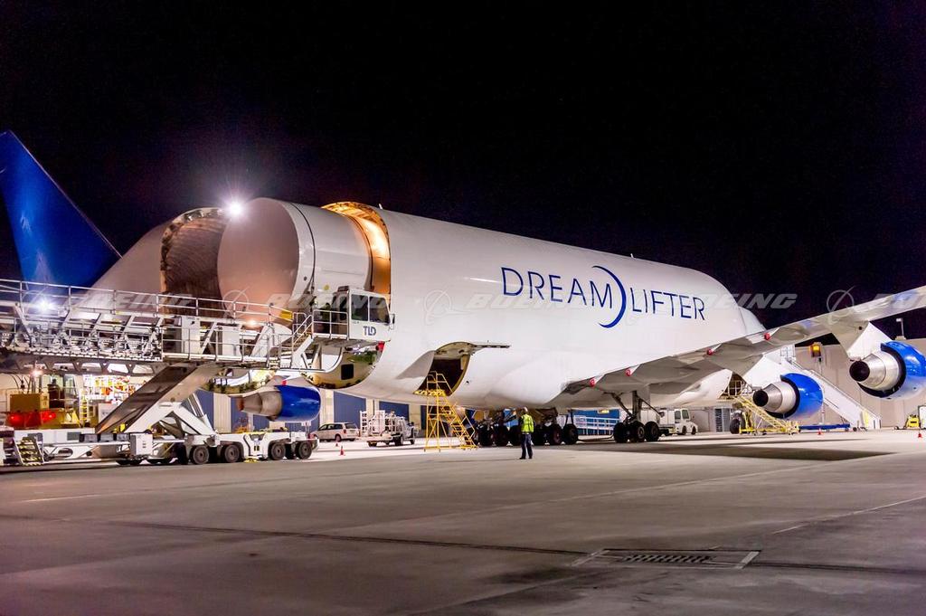 Boeing Dreamlifter Unloading 787 Forward and Aft Sections