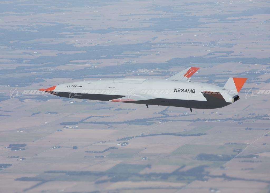 Boeing-owned MQ-25 test asset, aircraft T1, in flight