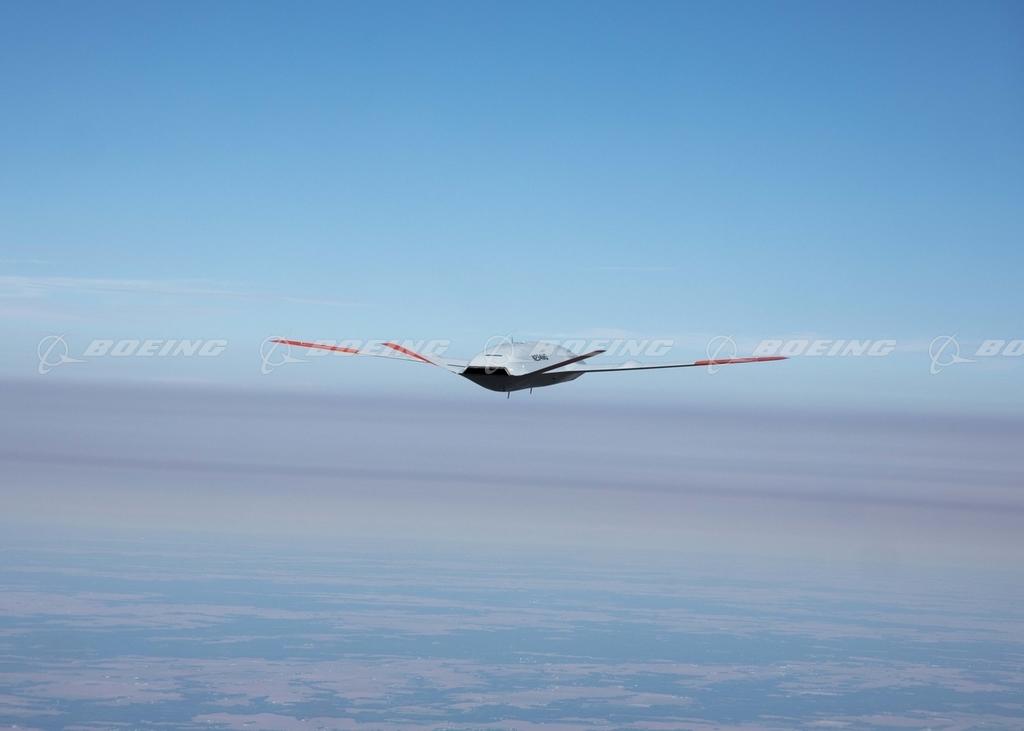 Boeing-owned MQ-25 test asset, aircraft T1, in flight