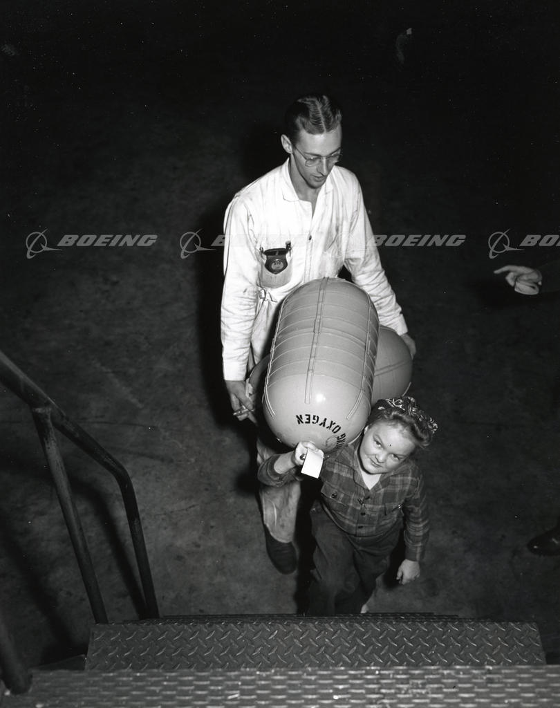 Little Person, Gerry Owens Riveting on Boeing B-17 Airplane