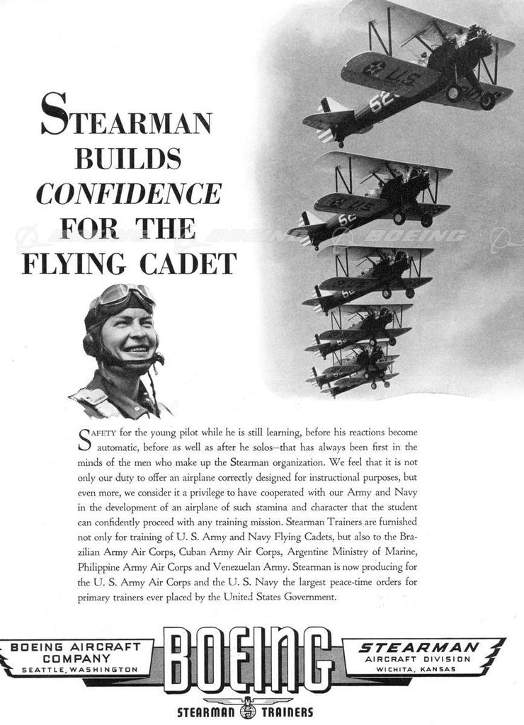 1940 Stearman Builds Confidence for the Flying Cadet ad.