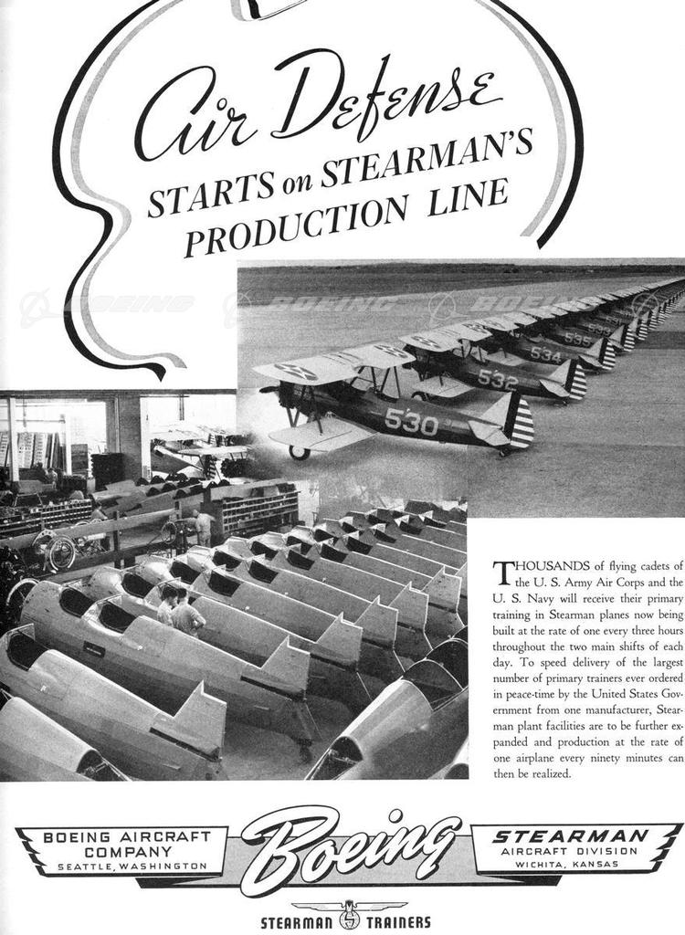 1940 Air Defense Starts on Stearman's Production Line Ad