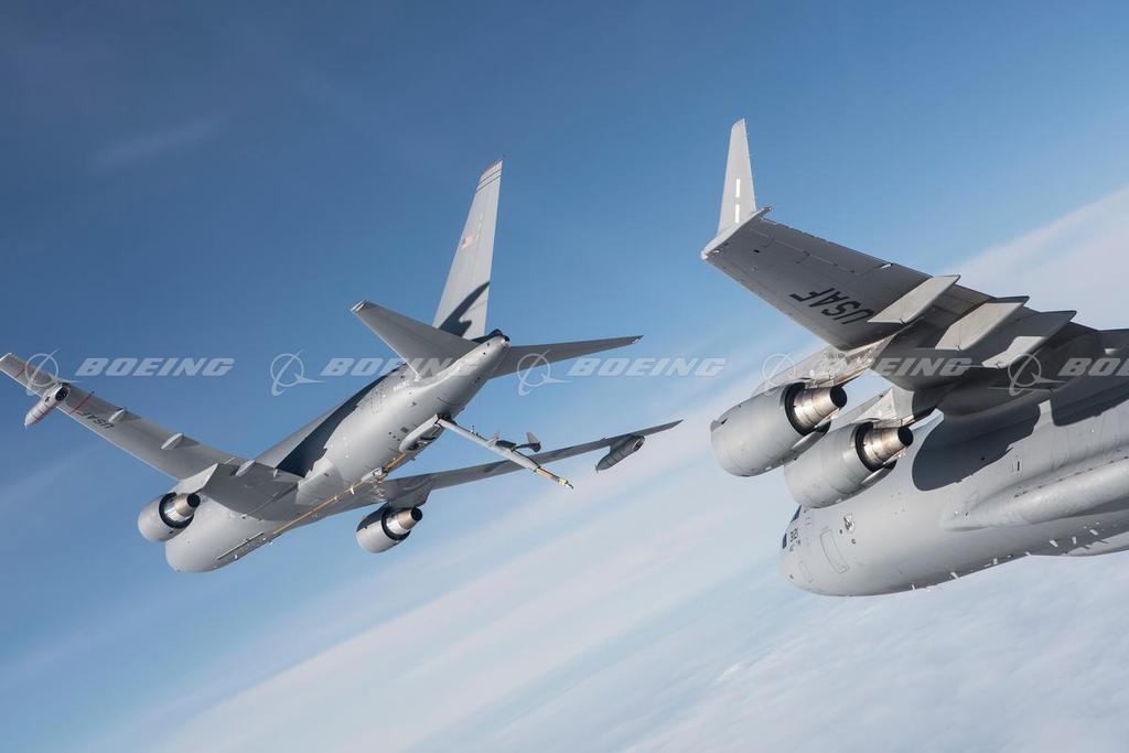 Boeing KC-46A Flies in Refueling Formation with a Boeing C-17 Globemaster III