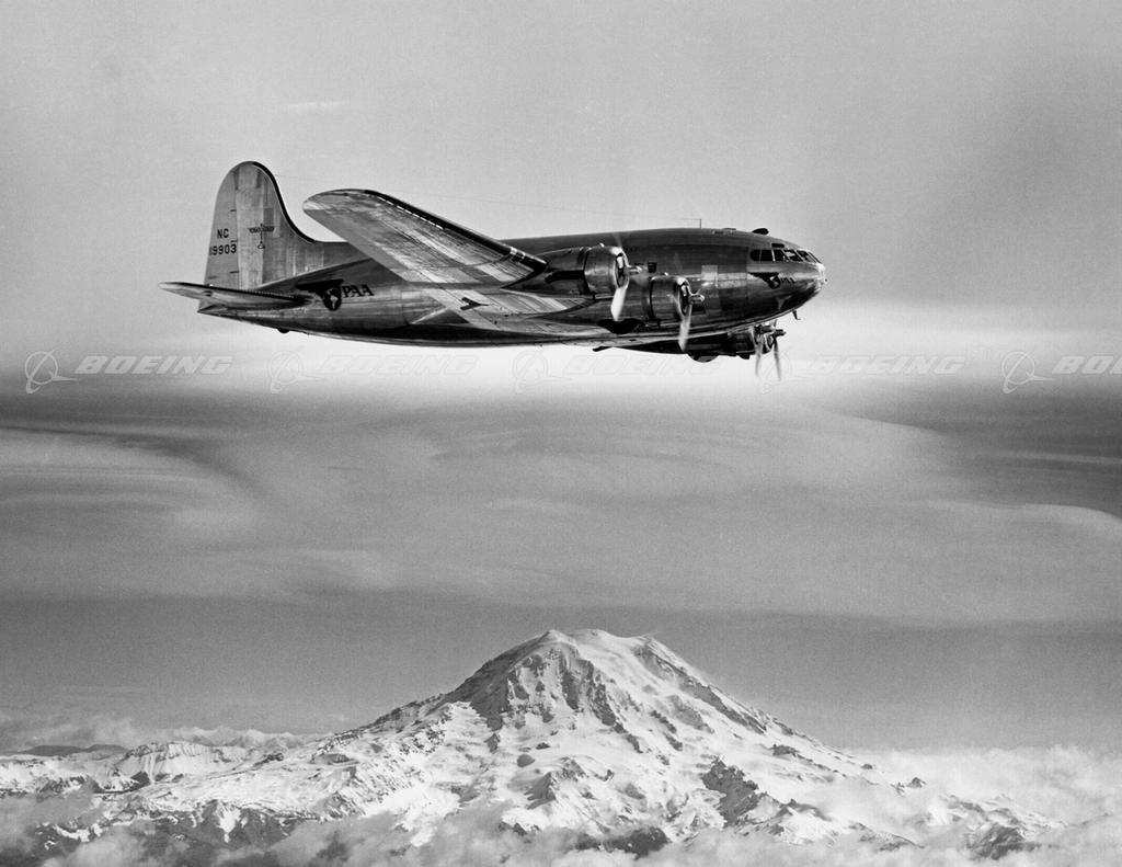 Boeing 307 Stratoliner Flies Over Mt. Rainier