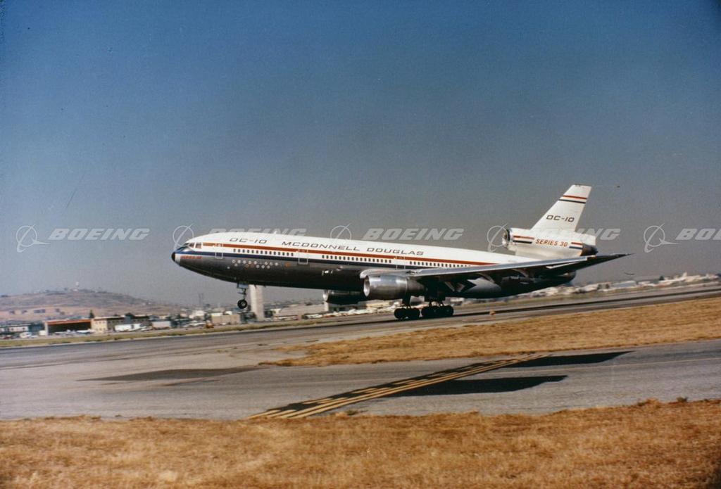 First flight of McDonnell Douglas DC-10 Series 30 taking off from Long Beach Airport on July 3, 1972.