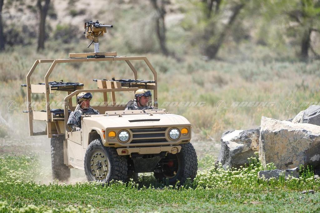 Boeing’s Phantom Badger is a rugged combat support vehicle that features an innovative modular design to provide added mission flexibility for the warfighter. With four-wheel steering, all wheel drive and its 240-horsepower engine, the vehicle can negotiate the toughest terrain. The vehicle can reach speeds of 80 mph, ford up to three feet of water and has a turning radius of 24 feet. Phantom Badger was certified for internal transport aboard the V-22 and CH-47 in 2014 and can operate from many other aircraft such as the C-130 or C-17.