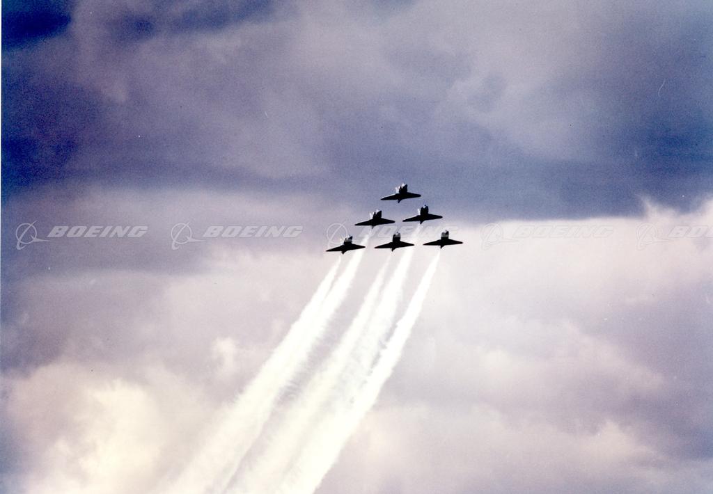 The Navy's Blue Angels flight demonstration squadron flew the McDonnell Douglas A-4 Skyhawk II from 1974 to 1986.