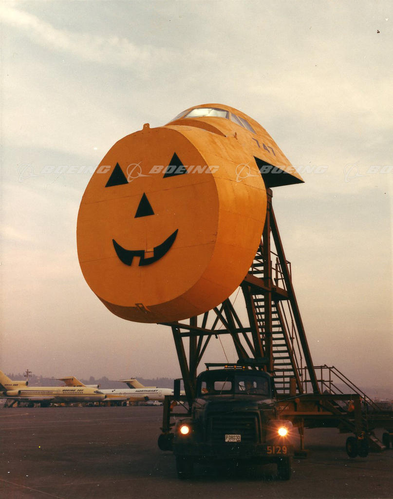 Truck mounted Boeing 747 cockpit simulator for taxi tests. October 1967