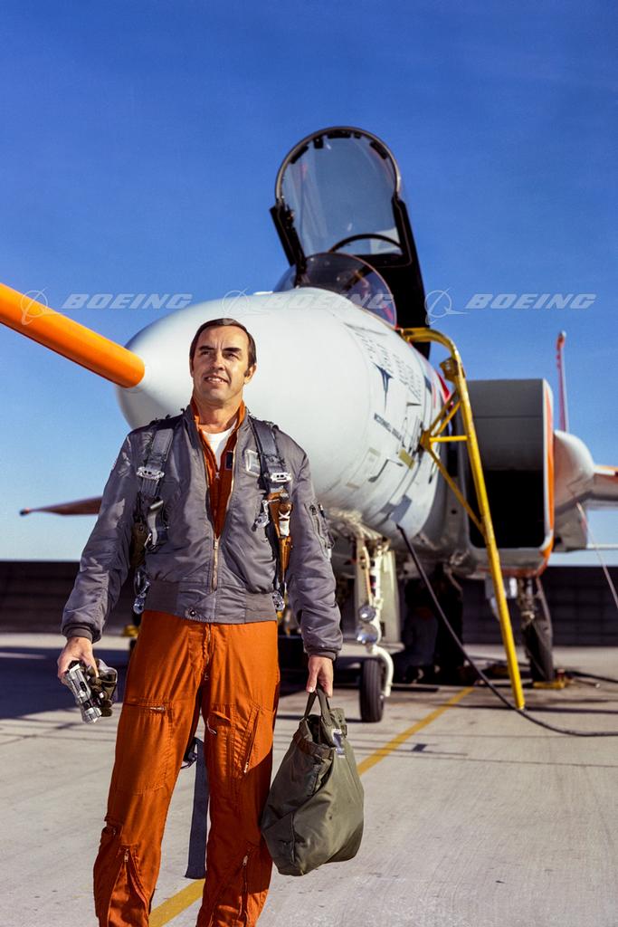 Irv Burrows, McDonnell Douglas Chief Test Pilot, Poses with F-15 Eagle Following First Flight