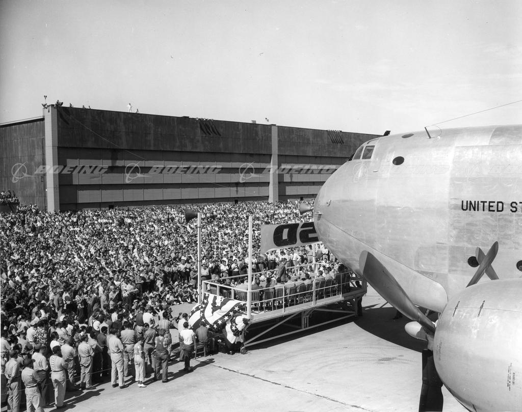 Donald W. Douglas at Podium for Delivery of 150th C-124 Globemaster II