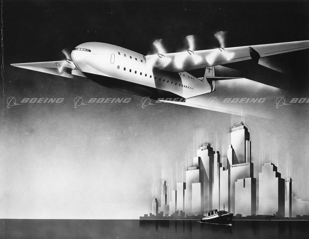 The Boeing Model 326 pressurized double-deck flying boat was designed in response to a 1937 Pan American Airways proposal for a flying ocean liner capable of a non-stop crossing over the Atlantic Ocean. This idea never reached production.