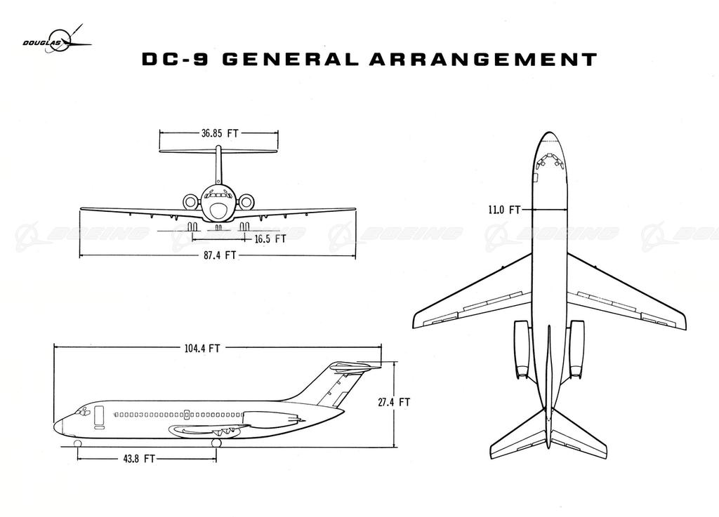 The DC-9 was designed specifically to operate from short runways and on short- to medium-range routes so that the speed, comfort and reliability of jet transportation could be extended to communities previously served only by propeller-driven airliners. More than 976 DC-9s were built, including 47 C-9 versions for military customers.