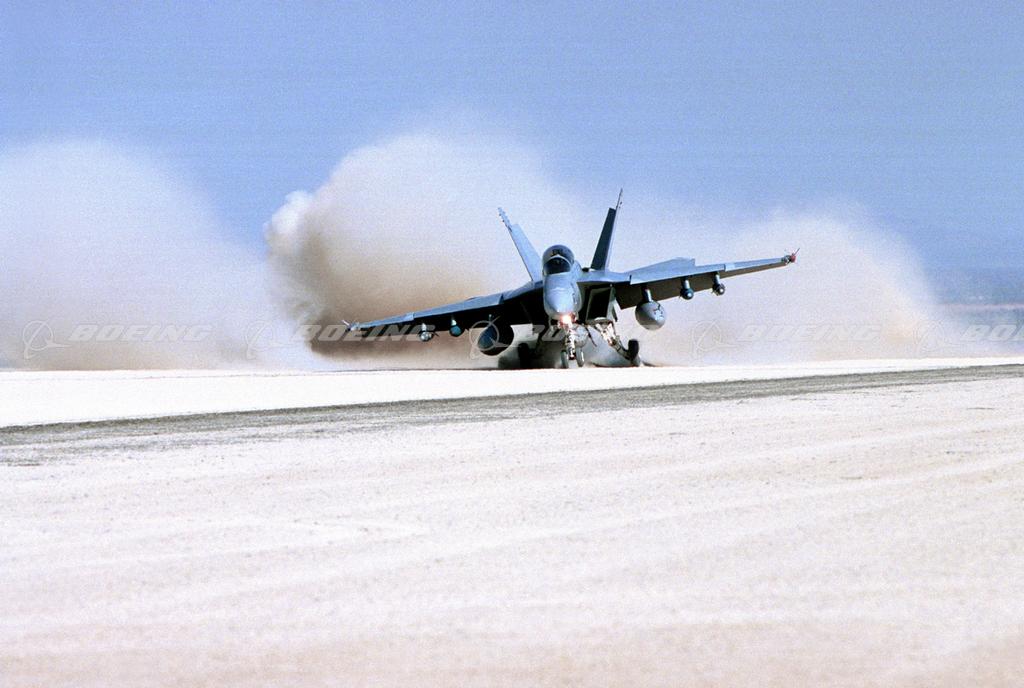 This F/A-18F Super Hornet was used to demonstrate maximum crosswind takeoff and landing capability during the Engineering, Manufacturing and Development (EMD) test program in the spring of 1998. The tests were conducted at Rogers Dry Lakebed, Edwards AFB, California. 38 takeoffs and landings were completed in 9 days, illustrating the aircraft’s capabilities for fleet pilots on land and sea.
