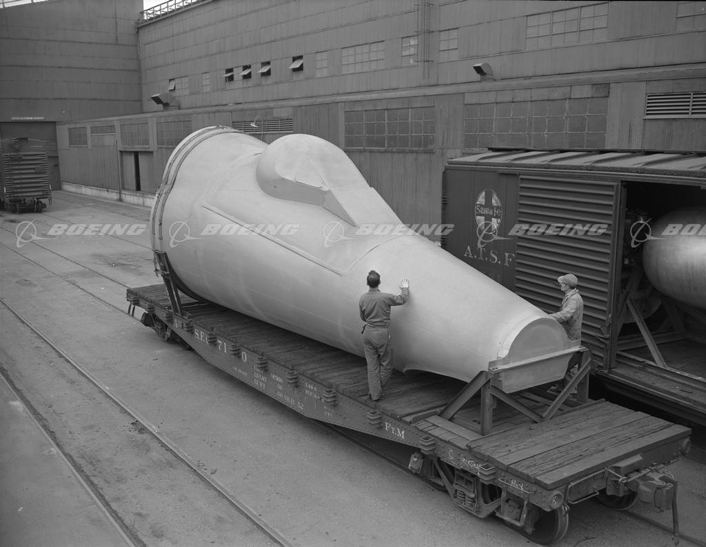 Ryan Aeronautical built Fuselage Section 45 for the KC-97 Tanker in San Diego, CA and delivered them by rail to Boeing in Seattle, WA. (April 21, 1953)