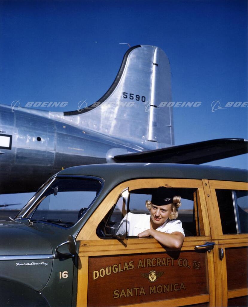 Female Employee Machinist Working on Aircraft for Douglas Aircraft Company