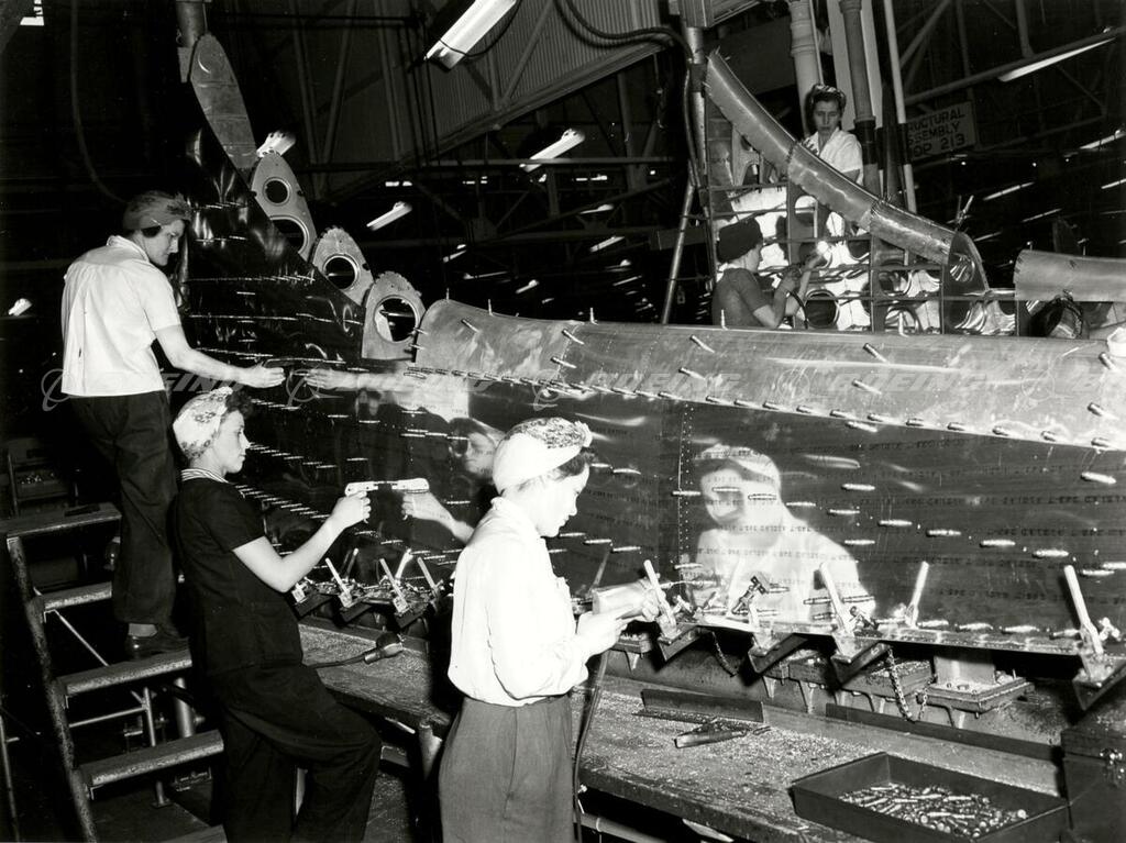 Employees Working Together on a Boeing B-17 Flying Fortress Assembly
