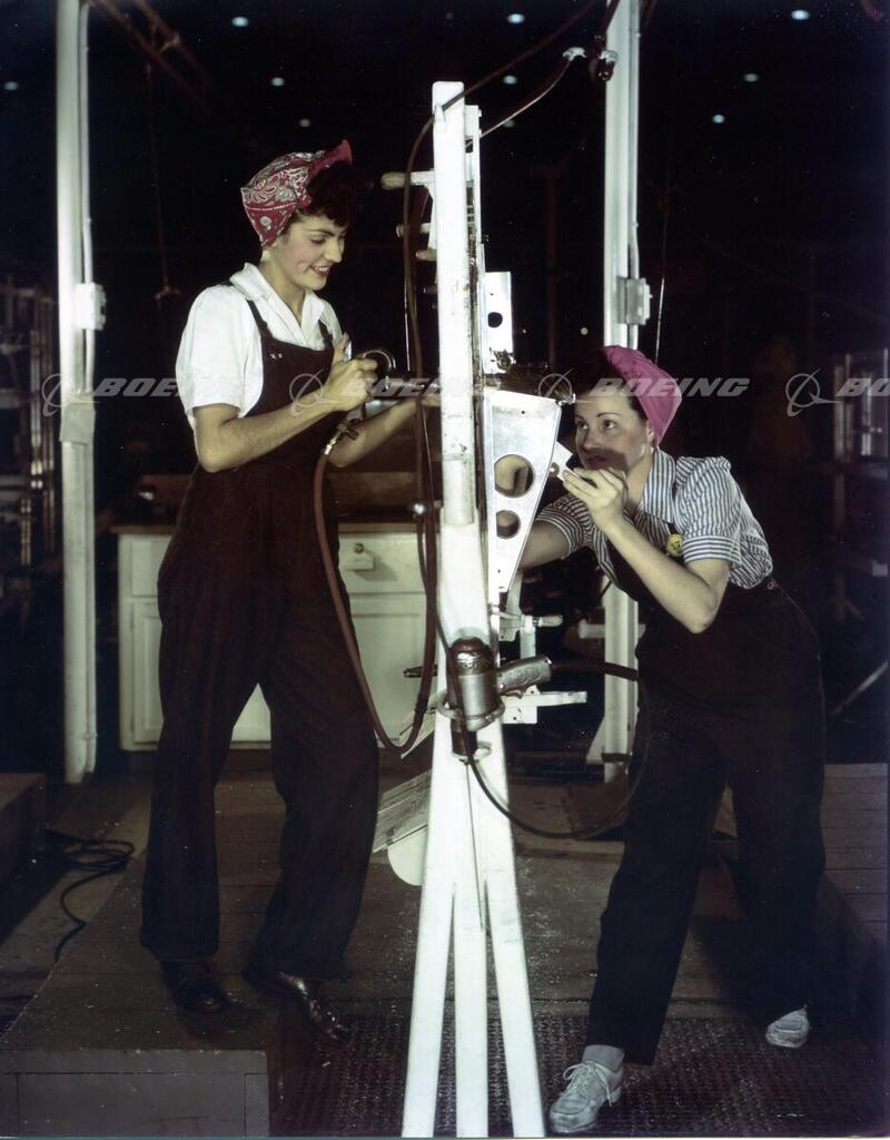 Female Employee Machinist Working on Aircraft for Douglas Aircraft Company