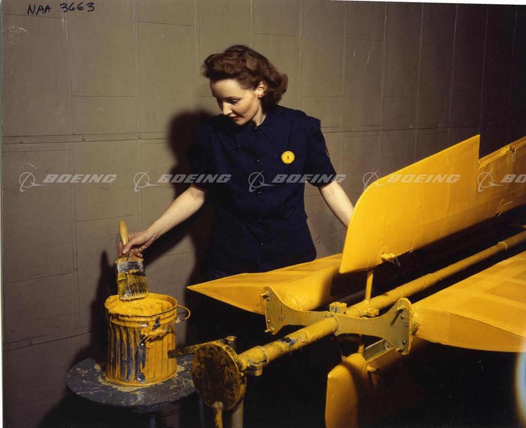 North American Aviation female employee painting.