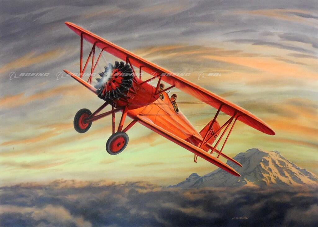 In July of 1959, Boeing Historical services began creating the Boeing Historical Watercolor Series to showcase the products of Boeing that span the years 1917-1959. Over the next six years, a host of illustrators representing all the divisions of Boeing produced this collection of works to commemorate Boeing’s 50thAnniversary in 1966. The enthusiasm of the artists led many of them to accomplish the work off hours.