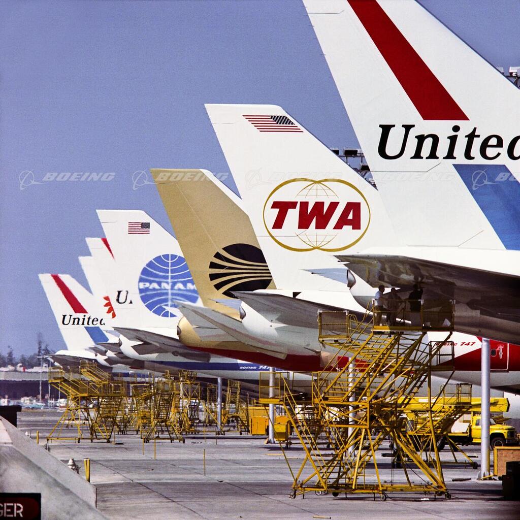 Pan Am Cabin Attendants on Boeing 747 Wing